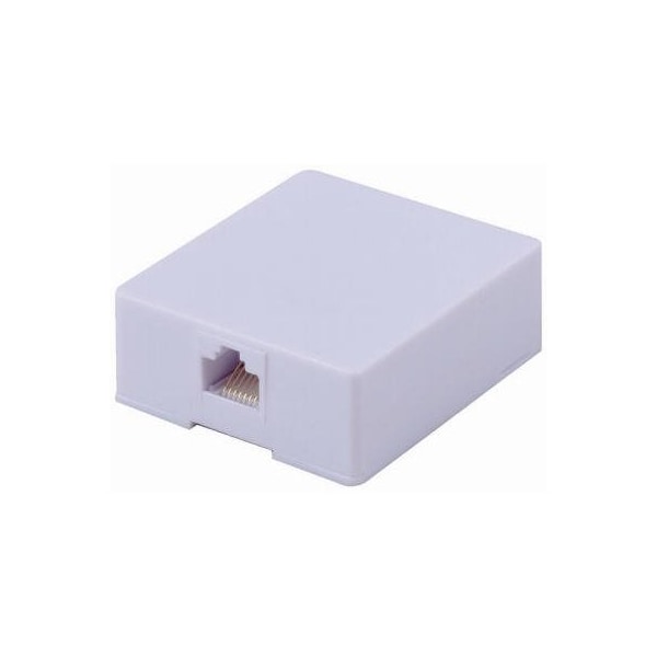 Cat 5E/6 Surface Mount Jack. White finish with 8 wire connections. Modular outlet for ethernet connections carded.
