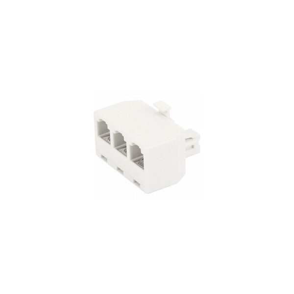 White, Triplex 3 Line Jack Plug, Converts One 3 Line Outlet Into 3 Separate Lines.