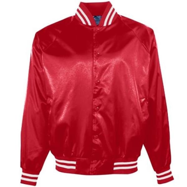 Augusta 3610A Satin Baseball Jacket-Striped Trim; Red & White - Large