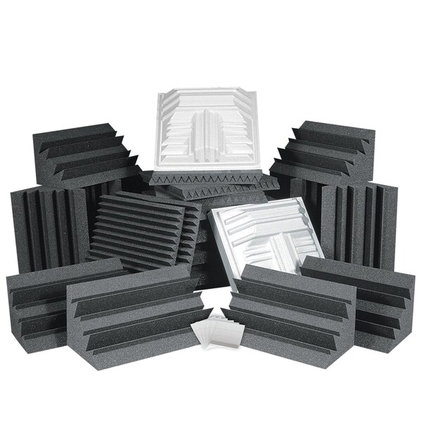Nobody else ever did it for you, so Auralex took the guesswork out of acoustics and made it EASY AND AFFORDABLE to improve your sound! We proudly offer four Roominators Complete Acoustical Control Kits that can easily tame the sound problems many people run up against in commonly-sized rooms. With Roominators, everyone from the novice to the pro can sound their best.no formulas, no mumbo jumbo, no physics required! Finally, somebody has made it easy for you to sound great!The Roominators Pro Plus acoustic sound control kit is designed primarily for rooms with a floor square footage of 250-400 ft/sq. The shortest room dimension should be 12-16 feet. 36 2 in. x 24 in. x 24 in. Studiofoam Wedge panels, Charcoal. 12 LENRD Bass Traps, Charcoal. 8 T'Fusor Diffusors. 248 EZ-Stick Pro Tabs