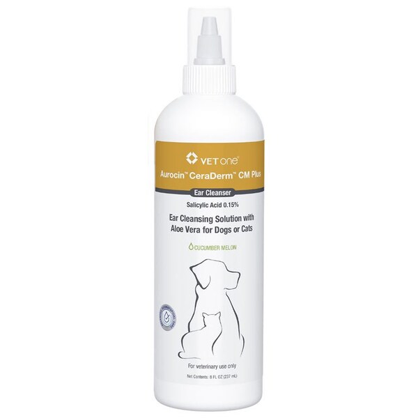 Aurocin CeraDerm is an ear cleanser with salicylic acid, a beta-hydroxy acid BHA that exfoliates and penetrates dead skin cells, wax build-up, and dirt to clean, dry, and deodorize the ear canal. The ingredients in Aurocin CeraDerm CM Plus help to moisturize and soothe the skin. They also provide the necessary building blocks for restoring skin barrier integrity and support the skin's natural immune system.