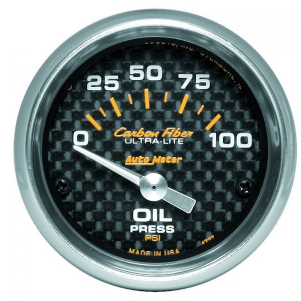 2IN OIL PRESS, 0-100 PSI, SSE, CARBON FIBER
