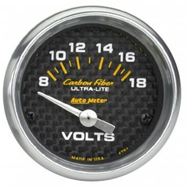 Motor State Distributing has set the pace for high-performance automotive components for racing street and off-road use. Keep tabs on the health and output of your vehicles electrical system safely and accurately. With a patented air core meter movement this gauge operates with category defining accuracy anywhere from 8-18 volts on negative ground electrical systems. Installation is simple and it can keep you from being stranded on the side of the road. Features -Traditional incandescent lighting illuminates around the perimeter of the dial -12 and 16 volt compatible well-suited with nearly every street car or race car electrical system -Carbon Fiber Voltmeter Gauge Specifications - Size: 2.06 in.