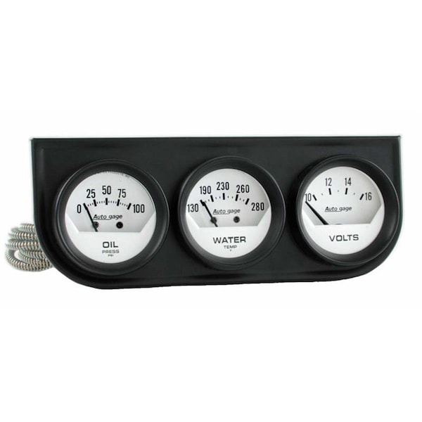 Auto Meter 2324 Auto Gage White Oil & Volt & Water Black Steel Console - 2.06 in.