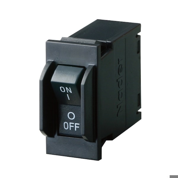 The NDB330Z425-1QHY110R is a DC panel mount circuit breaker with a black rocker with vertical white printing. This rocker acutator circuit breaker is a hydraulic magnetic breaker with an DC medium trip curve and a DC 80V rating. With a UL1077 Approval, these easy-to-install snap-in panel mount circuit breakers with a rocker switch actuator are ideal for all types of equipment, marine and other applications. The current rating for this 1 pole DC panel mount circuit breaker with a printed rocker actuator is 25 Amps. A wide range of wiring termination options and rocker colors and printing are available for this rocker switch circuit breaker.