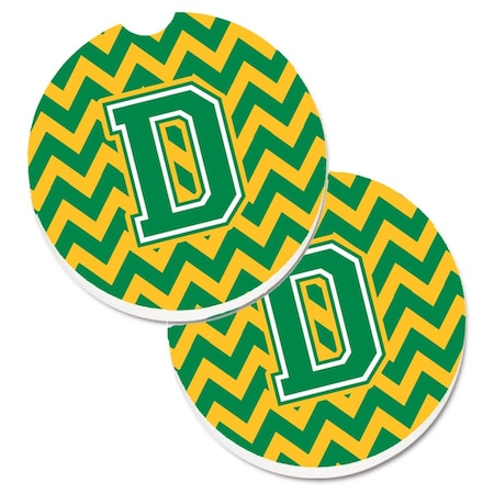 Letter D Chevron Green and Gold Set of 2 Cup Holder Car Coaster