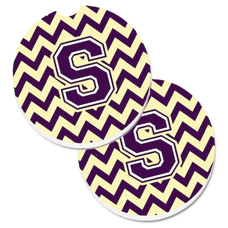 Letter S Chevron Purple and Gold Cup Holder Car Coaster, PK2
