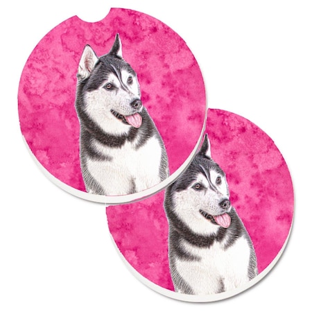 Pink Alaskan Malamute Set of 2 Cup Holder Car Coaster