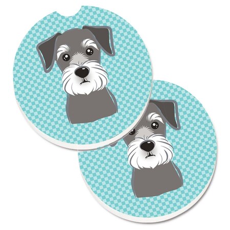 Checkerboard Blue Schnauzer Set of 2 Cup Holder Car Coaster