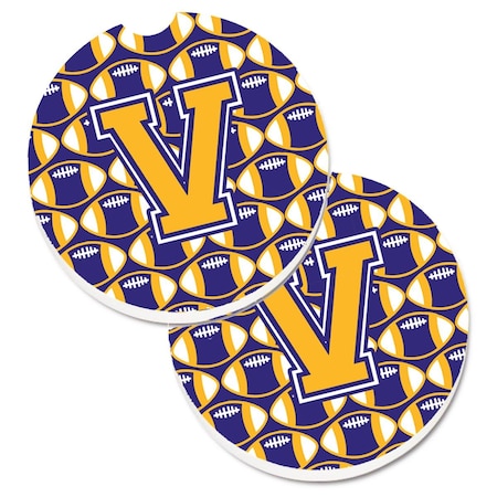 Letter V Football Purple and Gold Set of 2 Cup Holder Car Coaster