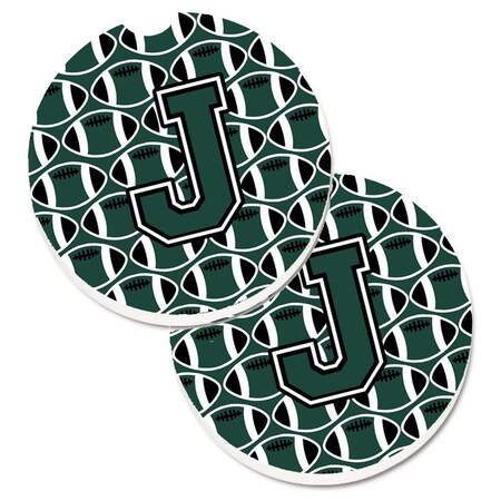 Letter J Football Green and White Set of 2 Cup Holder Car Coaster