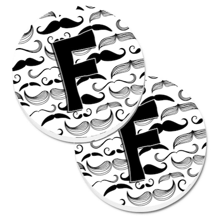 Letter F Moustache Initial Set of 2 Cup Holder Car Coaster