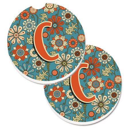 Letter C Flowers Retro Blue Set of 2 Cup Holder Car Coaster
