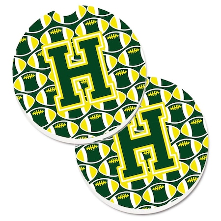 Letter H Football Green and Yellow Cup Holder Car Coaster, PK2
