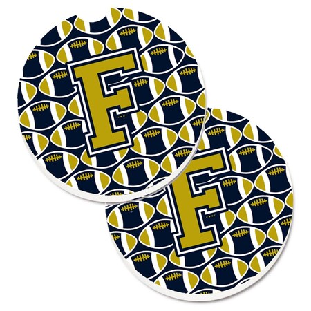 Letter F Football Blue and Gold Set of 2 Cup Holder Car Coaster