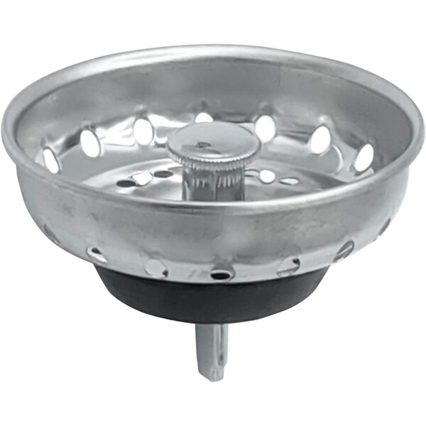 Replacement Kitchen Sink Stainless Steel Basket Strainer w/ Prong and Rubber Stopper, Universal Fit (Discontinued)