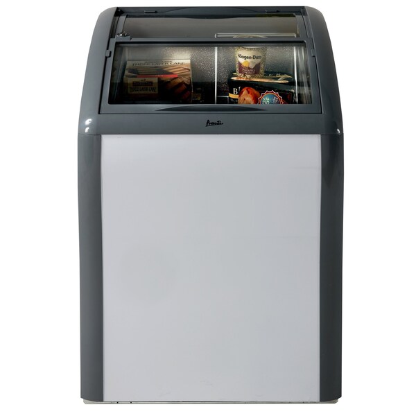 This 4.2 cubic feet commercial, glass top chest freezer from Avanti allows you to see and display frozen food without opening the lid every time. This freezer can convert to a refrigerator or beverage cooler and is perfect for use in a restaurant, cafe, convenience store, and more. Additional features such as a fast freeze switch, security lock, and rollers for easy movement make this chest freezer a must-have for any home or a business owner.