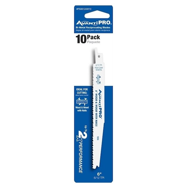Avanti Pro Reciprocating Saw Blade, Bi-Metal, White, 6/12, 54 Teeth, 6 in Length, 2 in Width, 0.55 in Thickness, Applicable Materials: Wood