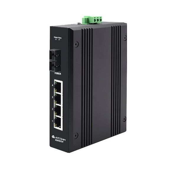 5-Port Industrial Unmanaged Ethernet Switch, 4 RJ45 10/100/1000BaseT(X), 1 1000BaseFX (Multimode, SC style connector) , DIN-Rail, Single Power Input 10-50VDC, -40°C-85°C