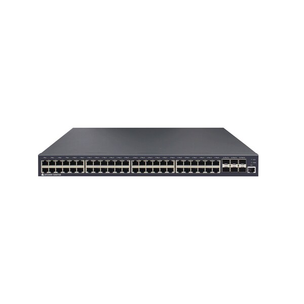54-port industrial data switch, light 3 layer, 48 RJ45 Ports 10/100/1000Base-T(X), 6 SFP Slots 1G/10GBaseSFP+, fan-less, Rack Mounting, standard built-in power supply 100-240VAC, -10°C-50°C