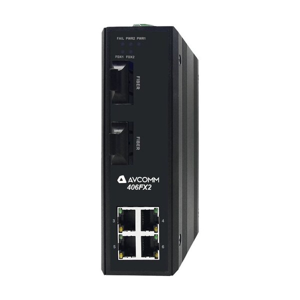 6-Port Industrial Unmanaged Ethernet Switch, 4 RJ45 10/100BaseT(X), 1 100BaseFX (Multimode, ST style connector) , DIN-Rail, Single Power Input 10-50VDC,