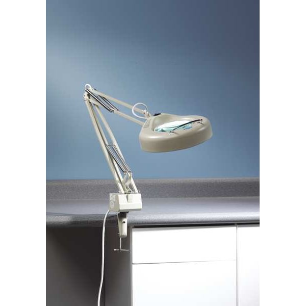 Round Magnifier Light, Arm Reach 45 in, Color White, Diopter 5, Lighting Technology Fluorescent, Magnification 2.25x, Maximum Brightness 560 lm, Mount Type Clamp, Dimmable No