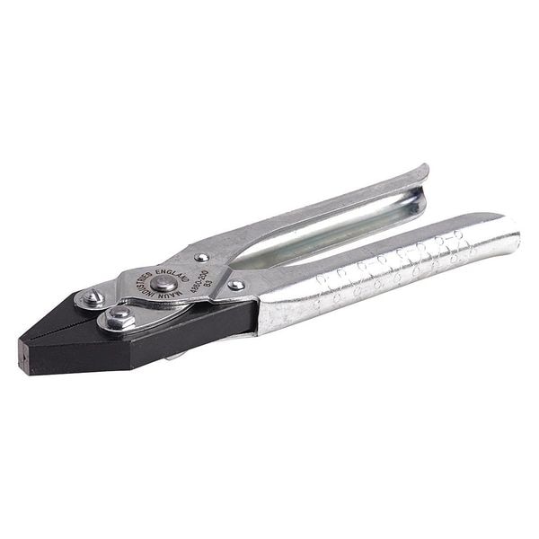 Serrated Jaws With V-Slot for Holding Wire; Grip Remains Consistently Parallel Along Full Length of Jaw When Open or Closed; Compound Lever Action With No Spring