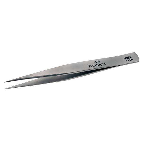 Tweezers, Compatible Wire Thickness - Maximum Not Applicable, Grip Style Plain, Material Titanium, Overall Length 5 in, Product Type Conventional, Resistance Properties Magnetic, Chemical, Corrosion, Tip Angle 90 Degrees , Tip Material Titanium, Tip Shape Point, Tip Style Straight, Tip Texture Smooth, Tip Thickness 1.1 mm, Tip Width 1.6 mm, Trade Number AA, Features High Strength, Lightweight, Temperature - Maximum 1,600 Degrees F