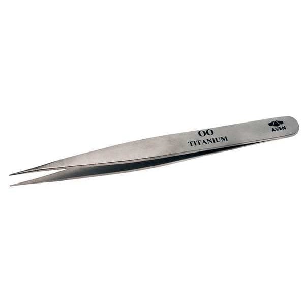 Tweezers, Compatible Wire Thickness - Maximum Not Applicable, Grip Style Plain, Material Titanium, Overall Length 4 3/4 in, Product Type Conventional, Resistance Properties Magnetic, Chemical, Corrosion, Tip Angle 90 Degrees , Tip Material Titanium, Tip Shape Point, Tip Style Straight, Tip Texture Smooth, Tip Thickness 0.9 mm, Tip Width 0.9 mm, Trade Number 00, Features Heavy-Duty, High Strength, Lightweight, Temperature - Maximum 1,600 Degrees F