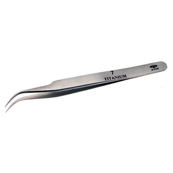 Tweezers, Compatible Wire Thickness - Maximum Not Applicable, Grip Style Plain, Material Titanium, Overall Length 4 3/4 in, Product Type Conventional, Resistance Properties Magnetic, Chemical, Corrosion, Tip Angle 45 Degrees , Tip Material Titanium, Tip Shape Point, Tip Style Curved, Tip Texture Smooth, Tip Thickness 0.53 mm, Tip Width 0.84 mm, Trade Number 7, Features High Strength, Lightweight, Temperature - Maximum 1,600 Degrees F
