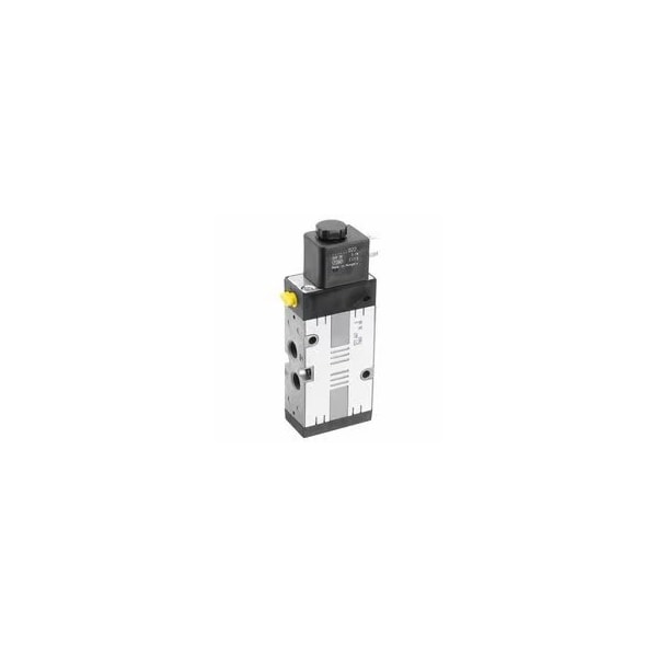 Solenoid Air Control Valve, Valve Ways and Positions 5-Way/2-Position, Voltage 24V DC, Center Position Not Applicable, Valve Actuator / Return Solenoid / Spring, ISO Class 228-1, Pipe Size 1/4 in, Operational Pressure Range 3 to 10 bar, Body Style Base-Mounted, Inline, Pilot Pressure 21.7 psi, Plug Electrical Connections, Shifting Technology Solenoid/Pilot, Power Consumption 2.7 W, Ambient Temp. Range -15 Degrees to 50 Degrees C, Override Non-Locking, Overall Height 9 7/16 in