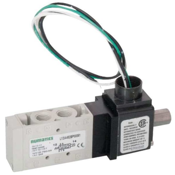 Solenoid Air Control Valve, Valve Ways and Positions 4-Way/2-Position, Voltage 24V DC, Center Position Not Applicable, Valve Actuator / Return Solenoid / Solenoid, ISO Class Not Applicable, Pipe Size 1/8 in, Max. CFM - Valves 46 cfm, Operational Pressure Range 0 to 150 psi, NEMA Classification NEMA 4, Valve Vacuum Range 0 to 28 in Hg, Body Style Base-Mounted, Inline, Pilot Port Size 1/4 in NPT, Pilot Pressure 14.5 psi, Coefficient of Volume 1, Hardwired Electrical Connections
