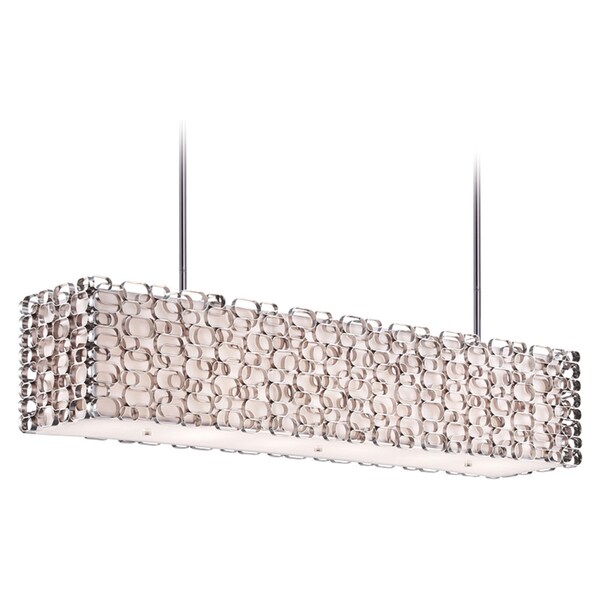 Inspired By The Trend Of Pattern Prints, Bring In A Modern Focal Point To Your Space With The Ventura Blvd. Collection Linear Hanging Fixture With Its Clean Lines Of Hand Crafted Oval Metal Pattern Over A Beautiful Ivory Silk Drum Shade.