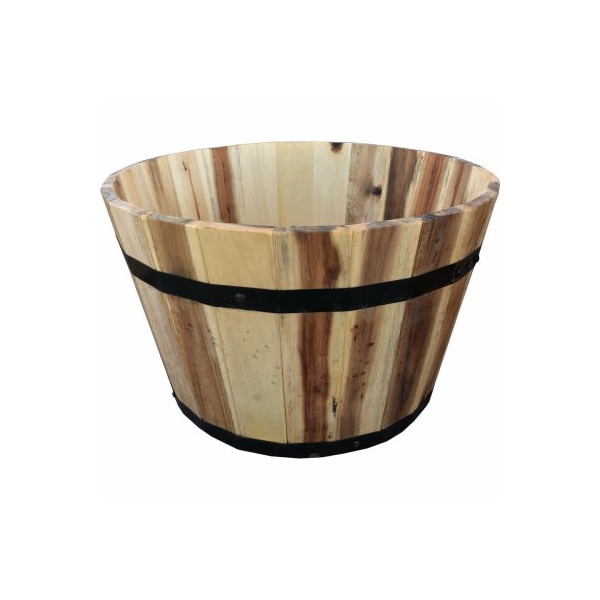 18W x 11H, Round, Wood Barrel Planter