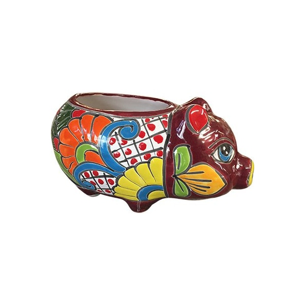6, Pig Shaped Planter, Hand Painted, Double Fired Talavera Pottery