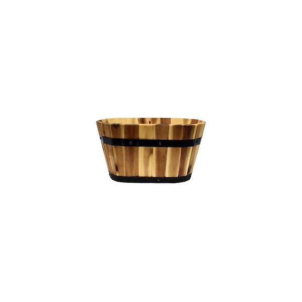 15inW x 8inH, Oval Planter Made Of Premium Acacia Wood & Sealed With All Natural Linseed Oil.