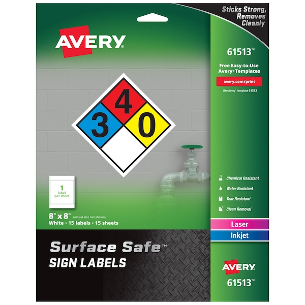 8" x 8" Laser/Inkjet Sign Labels, 15 labels/15-sheets