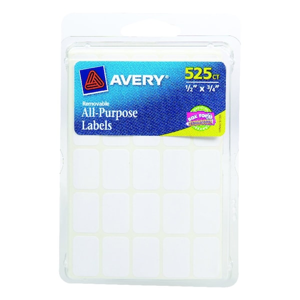 Avery 1/2 in. H X 3/4 in. W Rectangular White Labels 525 pk