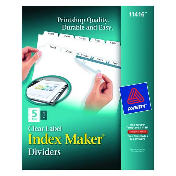 Avery Index Maker Clear Label Dividers 11416, 5-Tab Set, White