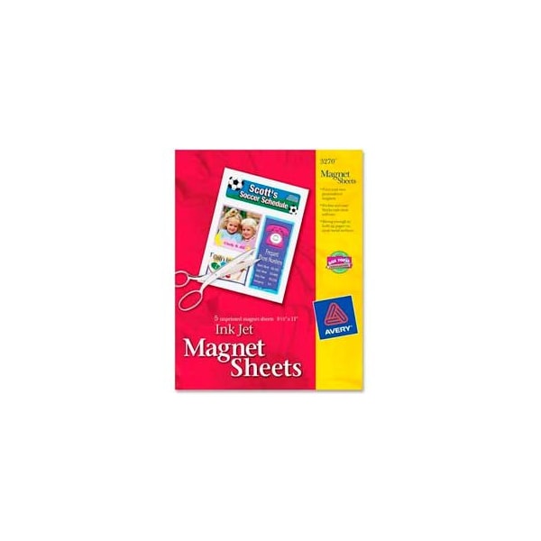 Avery inkjet magnet sheet, 8-1/2" x 11", matte, white, 5 sheets/pack create personalized magnetic business cards, logos and more. They stick to most metal surfaces and are matte coated to create rich colors and vibrant photo reproduction. Get great results that are easy to create. Print one or multiple designs on blank sheets and then cut out with scissors or trim out with paper trimmer. Magnet sheets feed easily through most inkjet printers. larger quantity quotes available. Please call 1-888-978-7759. this product arrives to most customers in 2-3 business days.
