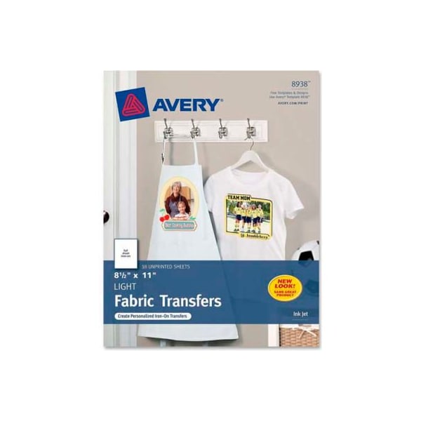 Avery light t-shirt transfer, 8-1/2" x 11", matte, white, 18 sheets/pack create your own iron-on transfers using an ordinary clothes iron, most software, your inkjet printer and personal creations t-shirt transfers. T-shirt transfers are designed for white or light-colored, 100 percent cotton or polyester/cotton fabrics. Image can be flipped using the printer menu or iron-on transfer feature within graphics software. Color shield formula ensures crisp, long-lasting image quality. Transfers feed easily through most inkjet printers. this product arrives to most customers in 2-3 business days.