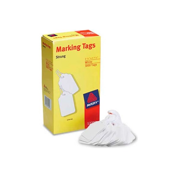 Avery marking tags, 2-3/4" x 1-11/16", white, 1000 tags/box strung marking tags offer a smooth surface for writing to make it simple to label items with important information. Ideal for marking prices, sizes, ownership or other features for sale or storage. Cardstock tag is durable for long-lasting use. Knotted twine lets you add and remove tag easily without tying knots. Twine is made of a blend of cotton and polyester. this product arrives to most customers in 2-3 business days.