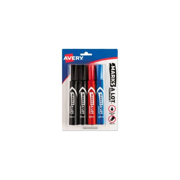 Avery MARKS A LOT Regular Desk-Style Permanent Marker, Broad Chisel Tip, Asstd Colors, 4/Set