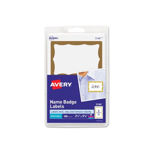 Avery Name Badge Labels With Gold Border, 2-11/32" x 3-3/8"