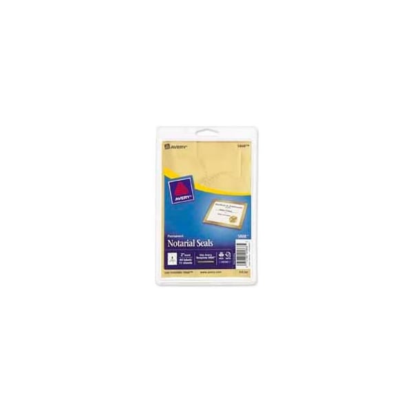 Avery print or write notarial & certificate seals, 2" diameter, gold, 44 labels/pack shiny, metallic gold seals enhance legal documents, certificates, awards, envelopes and more. Permanent adhesive keeps notarial seals secure and flat. Perfect for embossing. Write on or print using your inkjet printer. Notarial labels come on 4" x 6" sheets. larger quantity quotes available. Please call 1-888-978-7759. this product arrives to most customers in 2-3 business days.
