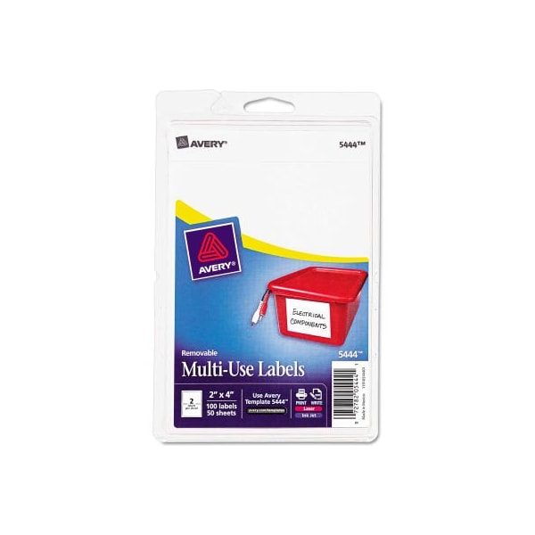 Avery Print or Write Removable Multi-Use Labels, 2 x 4, White, 100/Pack