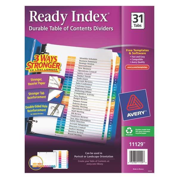 Avery Ready Index Table of Contents Dividers 11129, 31-Tab Set