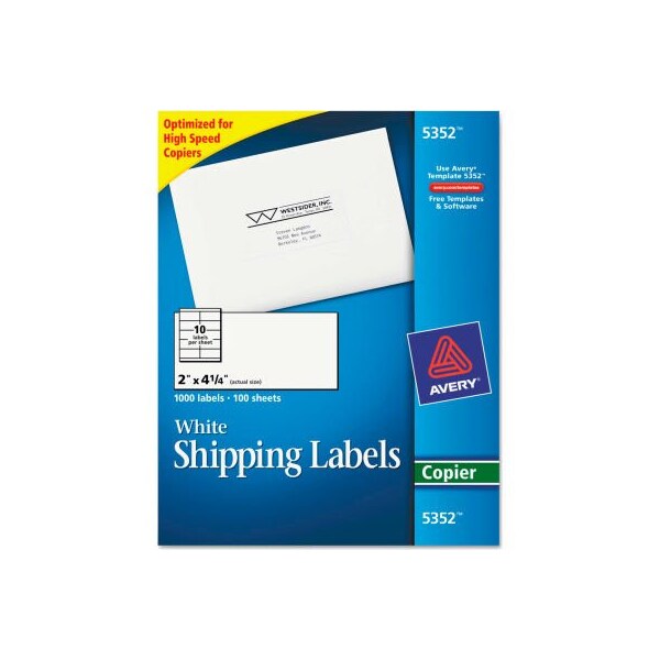 Avery Self-Adhesive Shipping Labels for Copiers, 2 x 4-1/4, White, 1000/Box