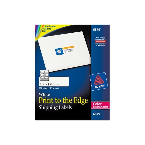 Avery Shipping Labels for Color Laser & Copier, 1-1/4 x 3-3/4, Matte White, 300/Pack