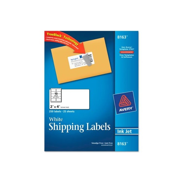 Avery Shipping Labels with TrueBlock Technology, 2 x 4, White, Ink Jet, 250/Pack